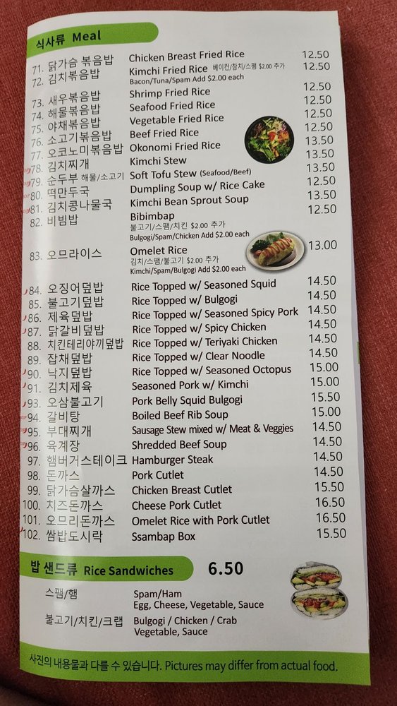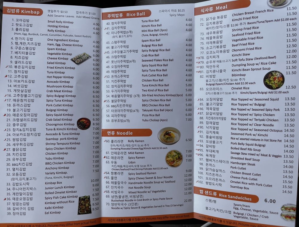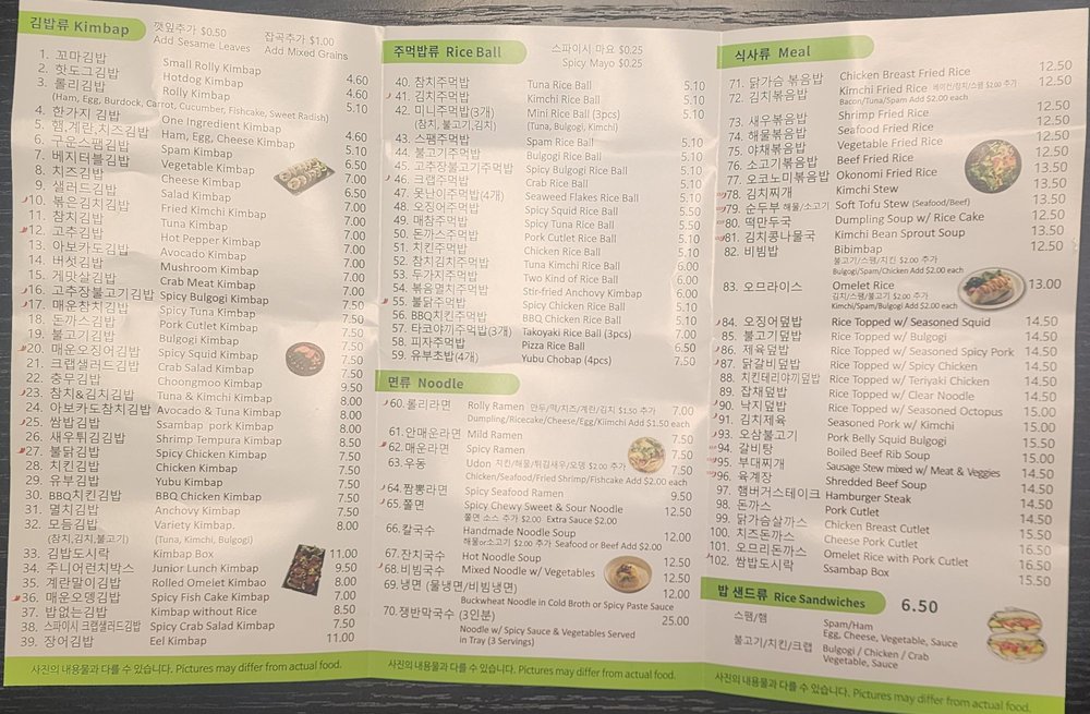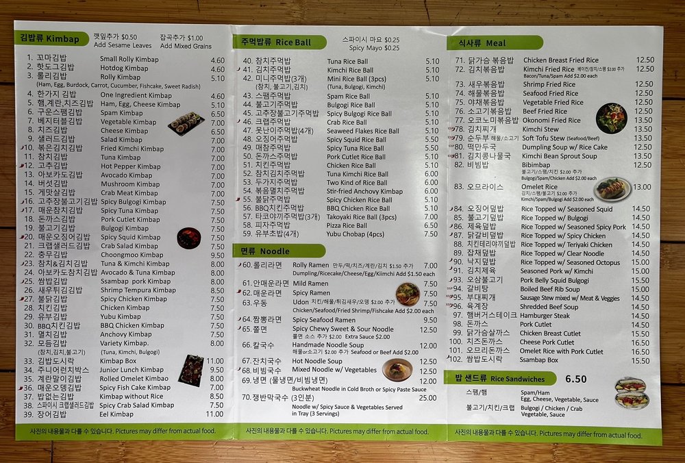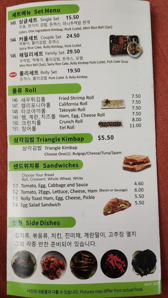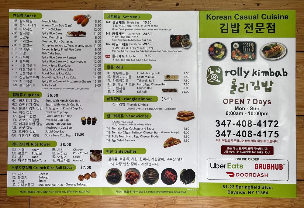 Rolly Kimbab Menu
